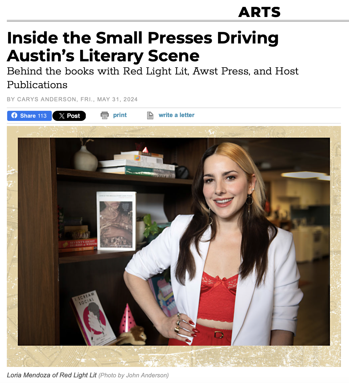 Featured in The Austin Chronicle (May 31, 2024), by Carys Anderson.
